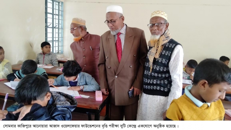 স্টাফ রিপোর্টারঃ সিরাজগঞ্জের কাজিপুর উপজেলার ঐতিহ্যবাহী শিক্ষা প্রতিষ্ঠান আনোয়ারা আজাদ এর নামে প্রাথমিক ও মাধ্যমিক বিদ্যালয়ের শিক্ষার্থীদের অংশগ্রহণে বৃত্তি পরীক্ষা অনুষ্ঠিত হয়েছে। সোমবার সকাল দশটায় থেকে মোট দুইটি কেন্দ্রে একযোগে এই পরীক্ষা অনুষ্ঠিত হয়েছে। পরীক্ষায় মোট ৭৬০ শিক্ষাথী অংশ নেয়। ফাউন্ডেশনের চেয়ারম্যান ও সহকারি অধ্যাপক এবিএম রেজাউল করিম বুলবুল জানান, প্রতি বছরই আমরা ফাউন্ডেশনের ব্যানারে এই পরীক্ষার আয়োজন করে আসছি। এতে করে শিক্ষার্থীদের মেধা যাচাইয়ের পাশাপাশি ভালো শিক্ষার্থীরা উপকৃত হয়। পরীক্ষা চলাকালিন বিভিন্ন কক্ষ ঘুরে দেখেন সংগঠনের পরিচালক মরিয়ম লাভলী, অধ্যক্ষ মারজিয়া বেগম ও মহাসচিব নাজমুল হক।