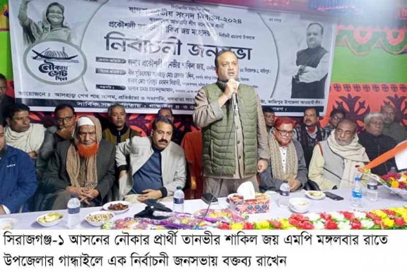 মঙ্গলবার রাত আটটায় কাজিপুরের গান্ধাইল গ্রামের সেই জনসভায় প্রধান অতিথি ছিলেন নৌকার প্রার্র্থী এমপি জয়। চার নম্বর ওয়ার্ড আওয়ামী লীগের আহবায়ক রোকনুজ্জামানের সভাপতিত্বে অনুষ্ঠানে জয় বলেন, দেশের উন্নয়ন চাইলে নৌকায় ভোট বিপ্লব ঘটানোর কোন বিকল্প নাই। নৌকা পাগল কাজিপুরবাসী এবার রেকর্ডসংখ্যক ভোটে নৌকার বিজয় সুনিশ্চিত করবে জানিয়ে তিনি বলেন, তাহলে হয়তো নেত্রীর নিকট থেকে আপনাদের জন্যে কোন উপহার অপেক্ষা করতেও পারে। এবার নির্বাচিত হলে চরকে টেকসই প্রযুক্তির মাধ্যমে গড়ে তোলাসহ চলমান উন্নয়ন কাজগুলো দ্রুততার সাথে শেষ করে নতুন পরিকল্পনা নিয়ে মডেল কাজিপুর বিনির্মাণে কাজ করার প্রত্যয় ব্যক্ত করেন তিনি।