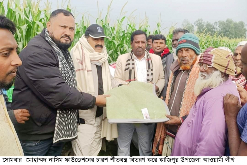 স্টাফ রিপোর্টারঃ সিরাজগঞ্জের কাজিপুর উপজেলার চরাঞ্চলের খাসরাজবাড়ী ও কাজিপুর পৌরসভার চারশ শীতার্ত পেলেন মোহাম্মদ নাসিম ফাউন্ডেশনের শীতবস্ত্র। সোমবার দুপুরে পৃথকভাবে কাজিপুর পৌরসভার দেড়শ শীতার্তকে একটি করে কম্বল দেয়া হয়। পরে দুর্গম চরাঞ্চলের খাসরাজবাড়ী ইউনিয়নের বিভিন্ন এলাকায় ঘরে ঘুরে দুইশ পঞ্জাশজনকে একটি করে কম্বল দেয়া হয়েছে।