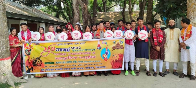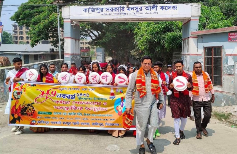 আবদুল জলিল- কাজিপুরঃ সিরাজগঞ্জের ঐতিহ্যবাহী শিক্ষা প্রতিষ্ঠান সরকারি মনসুর আলী কলেজে আনন্দঘন পরিবেশের মধ্যে দিয়ে আজ বাংলা বর্ষবরণ-১৪৩১ পালিত হলো।