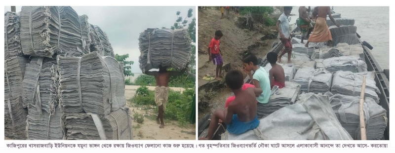 সিরাজগঞ্জ পানি উন্নয়নবোর্ডের উপসহকারী প্রকৌশলী (এসও)হাফিজুর রহমান জানান, প্রাথমিক পর্যায়ে দশ হাজার জিওব্যাগ ফেলা হবে। প্রয়োজনে বরাদ্দ বাড়তে পারে।