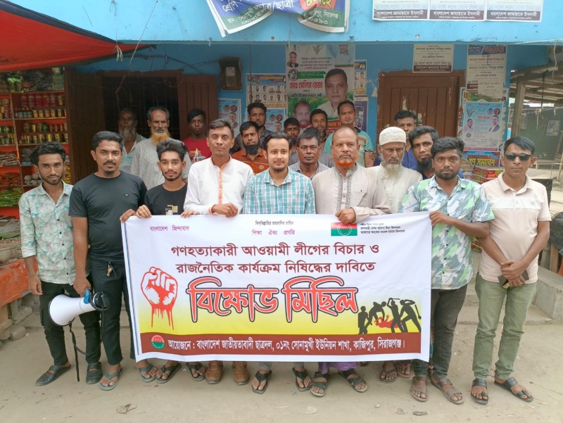 সিরাজগঞ্জের কাজিপুরে পতিত আওয়ামী লীগের নেতাকর্মিদের বিচার ও রাজনৈতিক কার্যক্রম নিষিদ্ধের দাবীতে ছাত্রদলের এক বিশাল বিক্ষোভ মিছিল অনুষ্ঠিত হয়েছে।