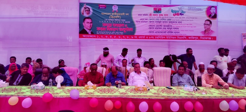 স্টাফ রিপোর্টারঃ সিরাজগঞ্জের কাজিপুর উপজেলার চরগিরিশ ও মনসুন নগরে বিএনপির সদস্য নবায়ন ও ফরম বিতরণ উপলক্ষে এক আলোচনা সভা অনুষ্ঠিত হয়েছে। শনিবারবার দুপুরে উপজেলার চরাঞ্চলে অবস্থিত চরগিরিশ ইউনিয়নের রঘুনাথপুর উচ্চ বিদ্যালয় মাঠে এবং বিকেলে আলহাজ্ব ফরহাদ আলী কলেজ মাঠে ইউনিয়ন বিএনপির আয়োজনে এই সভা অনুষ্ঠিত হয়। অনুষ্ঠানের প্রধান অতিথির বক্তব্য রাখেন সিরাজগঞ্জ জেলা বিএনপির সহ সভাপতি ও সম্মেলন প্রস্তুতি কমিটির সমন্বয়ক শ্রী অমর কৃষ্ণ দাস। সভায় প্রধান বক্তা ছিলেন কাজিপুর উপজেলা বিএনপির সাবেক সভাপতি সেলিম রেজা। এছাড়া অনুষ্ঠানে বিশেষ অতিথির বক্তব্য রাখেন সিরাজগঞ্জ জেলা বিএনপির সহসভাপতি নাজমুল হাসান তালুকদার রানা, সিরাজগঞ্জ জেলা বিএনপির সম্মেলন প্রস্তুতি কমিটির সদস্য রুমানা মোর্শেদ কনকচাঁপা , কাজিপুর উপজেলা বিএনপির সাবেক সাধারণ সম্পাদক প্রভাষক আব্দুস সালাম, কাজিপুর উপজেলা বিএনপির সাবেক সিনিয়র সহ সভাপতি এ্যাডভোকেট রবিউল হাসান। অনুষ্ঠানে উপস্থিত ছিলেন কাজিপুর উপজেলা বিএনপির সাবেক সহসভাপতি আব্দুল মালেক স্বপন চেয়ারম্যান, যুগ্ন সাধারণ সম্পাদক সাইদুল ইসলাম, সাংগঠনিক সম্পাদক মিজানুর রহমান বাবলু, উপজেলা যুবদলের সাবেক সাধারণ সম্পাদক সাজ্জাদুর রহমান বাবলু, যুবদলের সাবেক আহবায়ক মঞ্জুর রশিদ রানা, স্বেচ্ছাসেবকদলের আহবায়ক জুয়েল রানা, সদস্য সচিব এসএম শামীম রেজা রুবেল, ছাত্রদলের আহবায়ক রাশেদুল হাসান রিপন, যুগ্ন আহবায়ক আশিকুর রহমান প্রমূখ। অনুষ্ঠানে চরগিরিশ ও মনসুরনগর ইউনিয়নের ১ থেকে ৯ নম্বর ওয়ার্ডের সদস্য নবায়ন ও ফরম বিতরণ করা হয়।
