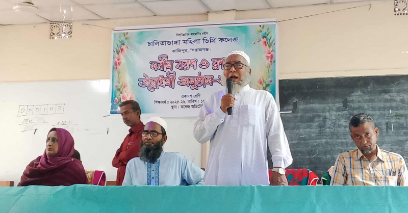 স্টাফ রিপোর্টারঃ নারী শিক্ষার অনন্য প্রতিষ্ঠান কাজিপুরের চালিতাডাঙ্গা মহিলা ডিগ্রি কলেজের একাদশ শ্রেণীর নবীন শিক্ষার্থীদের ক্লাস উদ্বোধন করা হয়েছে। সোমবার বেলা ১১ টায় কলেজ মিলনায়তনে আয়োজিত অনুষ্ঠানে সভাপতিত্ব করেন প্রতিষ্ঠানটির অধ্যক্ষ মোঃ ফজলুল হক। শুরুতে শিক্ষার্থীদের গোলাপের শুভেচ্ছা দিয়ে বরণ করে নেয়া হয়।এরপর প্রতিষ্ঠানটির অধ্যক্ষ ২০২৫-২০২৬ শিক্ষাবর্ষের শিক্ষার্থীদের ক্লাসের শুভ উদ্বোধন ঘোষণা করেন।