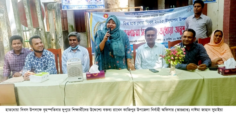 হাত ধোয়ার উপকারিতা জানান দিতে প্রতিবারের ন্যায় এবারও সিরাজগঞ্জের কাজিপুরে পালিত হয়েছে হাতধোয়া দিবস। বৃহস্পতিবার দুপুরে “হাত ধোয়ার নায়ক হোন ” প্রতিপাদ্যে উপজেলা প্রশাসন ও জনস্বাস্থ্য প্রকৌশল অধিদপ্তর এর যৌথ উদ্যোগে উপজেলার কুসুমকলি সরকারি প্রাথমিক বিদ্যালয়ে এই অনুষ্ঠানের আয়োজন করা হয়। আলোচনা অনুষ্ঠানে সভাপতিত্ব করেন কাজিপুর উপজেলা নির্বাহী অফিসার (ভারপ্রাপ্ত) নাঈমা জাহান সুমাইয়া।