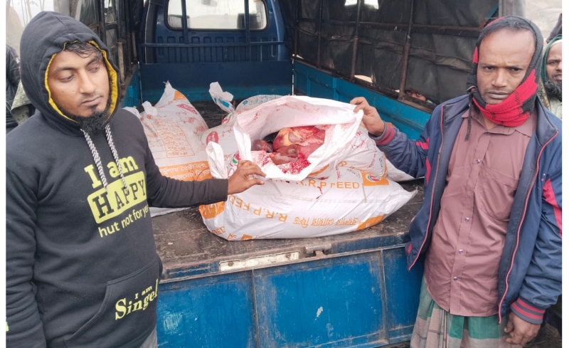 সিরাজগঞ্জের কাজিপুর উপজেলার যমুনার মেঘাই দুই নম্বর নৌকাঘাট এলাকা থেকে শুক্রবার জবাই করে বস্তায় ভরা অবস্থায় ঘোড়ার মাংস জব্দ করেছে উপজেলা প্রশাসন। গোপন সংবাদের ভিত্তিতে (২৬ ডিসেম্বর) সকাল পৌণে আটটায় যমুনার ঘাট এলাকায় অভিযান চালিয়ে এই ঘটনায় মাংস পরিবহনে জড়িত ব্যক্তি ও পরিবহনের কাজে ব্যবহৃত গাড়ির চালককে ভ্রাম্যমাণ আদালতে অর্থদন্ড করা হয়েছে। দন্ডপ্রাপ্তরা হলেন বগুড়া জেলার গাবতলী উপজেলার বাগবাড়ি গ্রামের মোয়াজ্জেম হোসেনের পুত্র জাইদুল এবং চালক গাজীপুর জেলার কোনাবাড়ী পেয়ারা বাগান এলাকার মৃত আবুর পুত্র তারেক। এরমধ্যে জাইদুলকে পশু জবাই ও মাংসের মান নিয়ন্ত্রণ আইন, ২০১১ এর ২৪(১) ধারা অনুযায়ী ১৫ হাজার টাকা এবং তারেককে ১০ হাজার টাকা অর্থদন্ড দিয়েছেন ভ্রাম্যমাণ আদালতের এক্সিকিউটিভ ম্যাজিস্ট্রেট ও কাজিপুর উপজেলা নির্বাহী অফিসার মোস্তাফিজুর রহমান।
